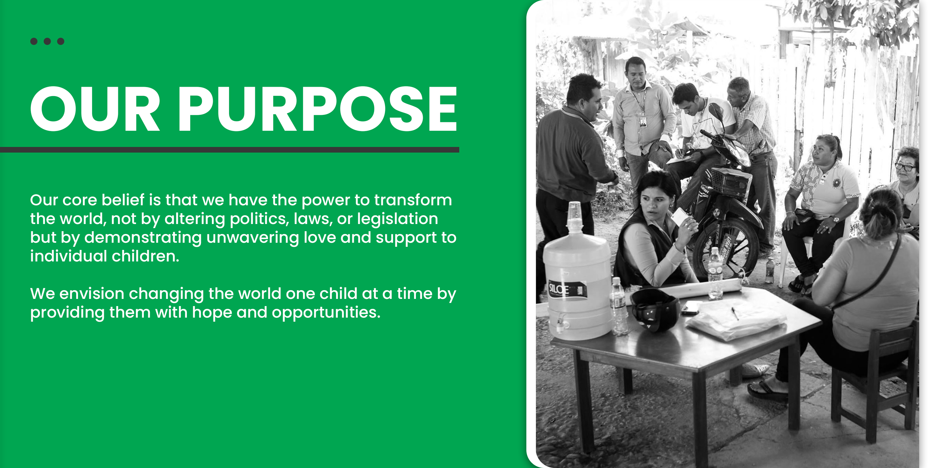 Our core belief is that we have the power to transform the world, not by altering politics, laws, or legislation but by demonstrating unwavering love and support to individual children. We envision changing the world one child at a time by providing them with hope and opportunities.